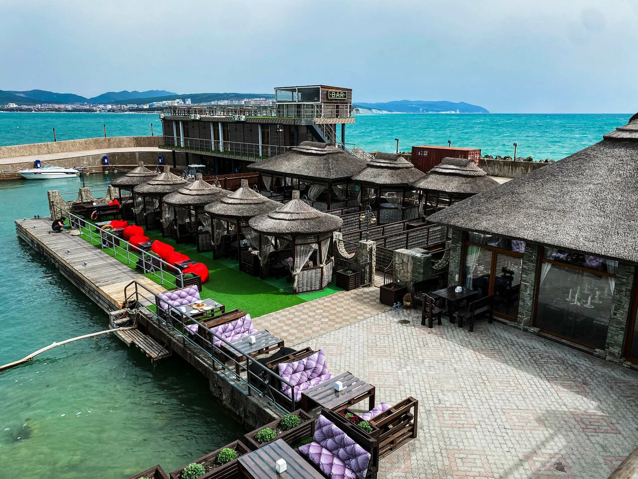 Ресторан «Хижина рыбака» расположен прямо на берегу моря, что делает его идеальным местом для тех, кто хочет насладиться шумом волн и видом на пришвартованные яхты.