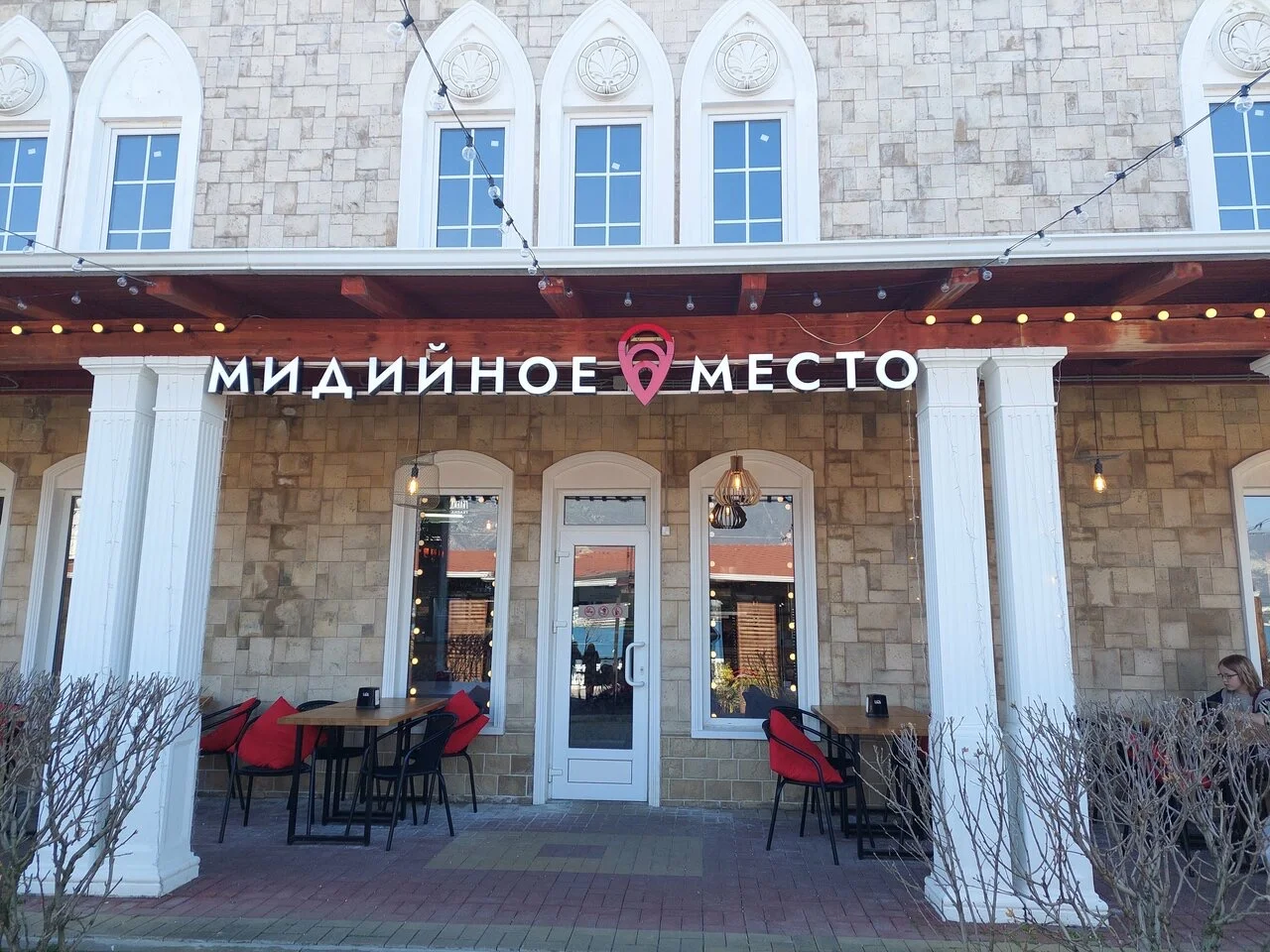«Мидийное место» — это ресторан, который специализируется на блюдах из морепродуктов, таких как мидии, устрицы, креветки и другие.