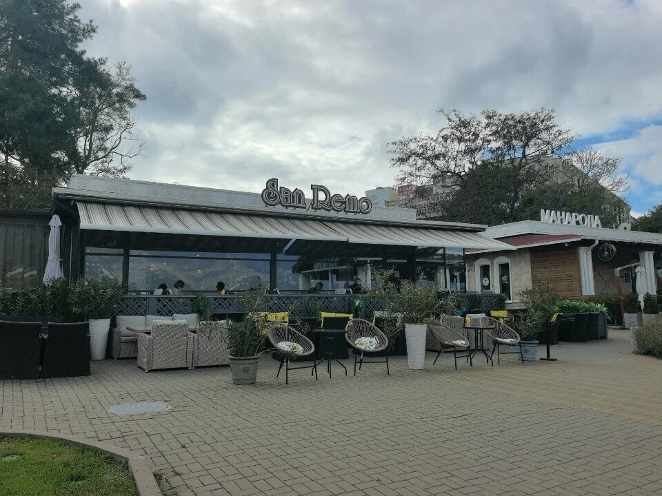 Кафе San Remo находится на набережной Геленджика и предлагает своим гостям прекрасный вид на море и бухту, а также уютную атмосферу с тихой музыкой и удобными столиками на веранде.